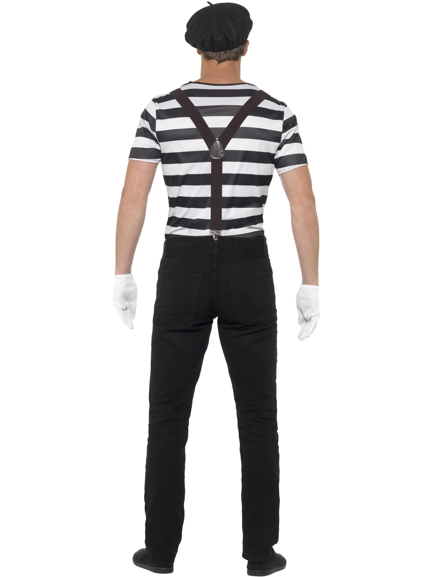 Gentleman Mime Artist Costume, Black with Top, Beret, Gloves, Braces & Make-Up